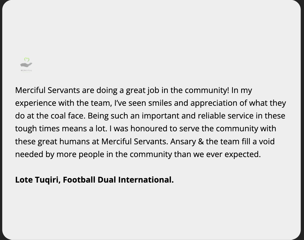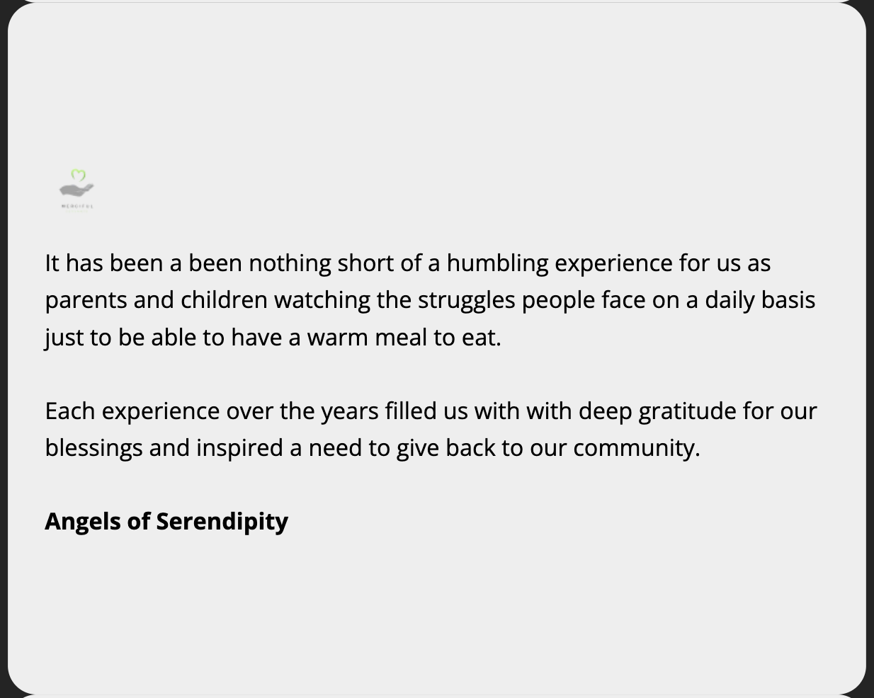 Local businesses play a vital role in supporting Merciful Servants’ initiatives. Their contributions help us provide essential food and supplies to those in need. Through their partnership, we’ve been able to expand our reach and continue making a meaningful impact in our community.